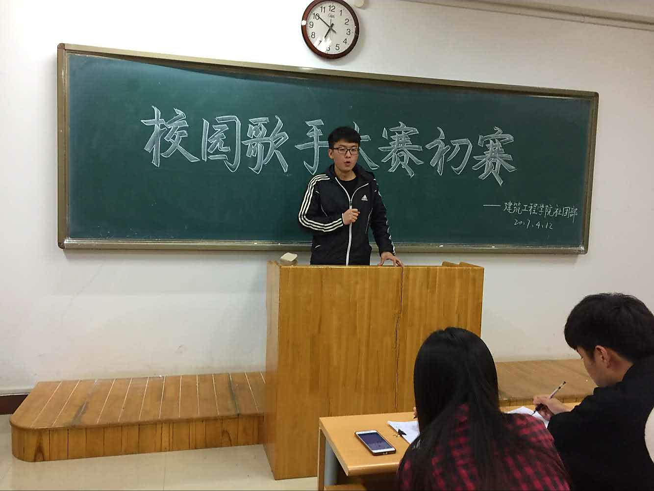 4月12日晚6:30,公司于8教413教室举行了校园歌手大赛初赛。本次活动由社团部承办,员工会主席王锋、社团部部长张文杰担任评委。公司14名参赛选手在这里唱响最美的歌声。