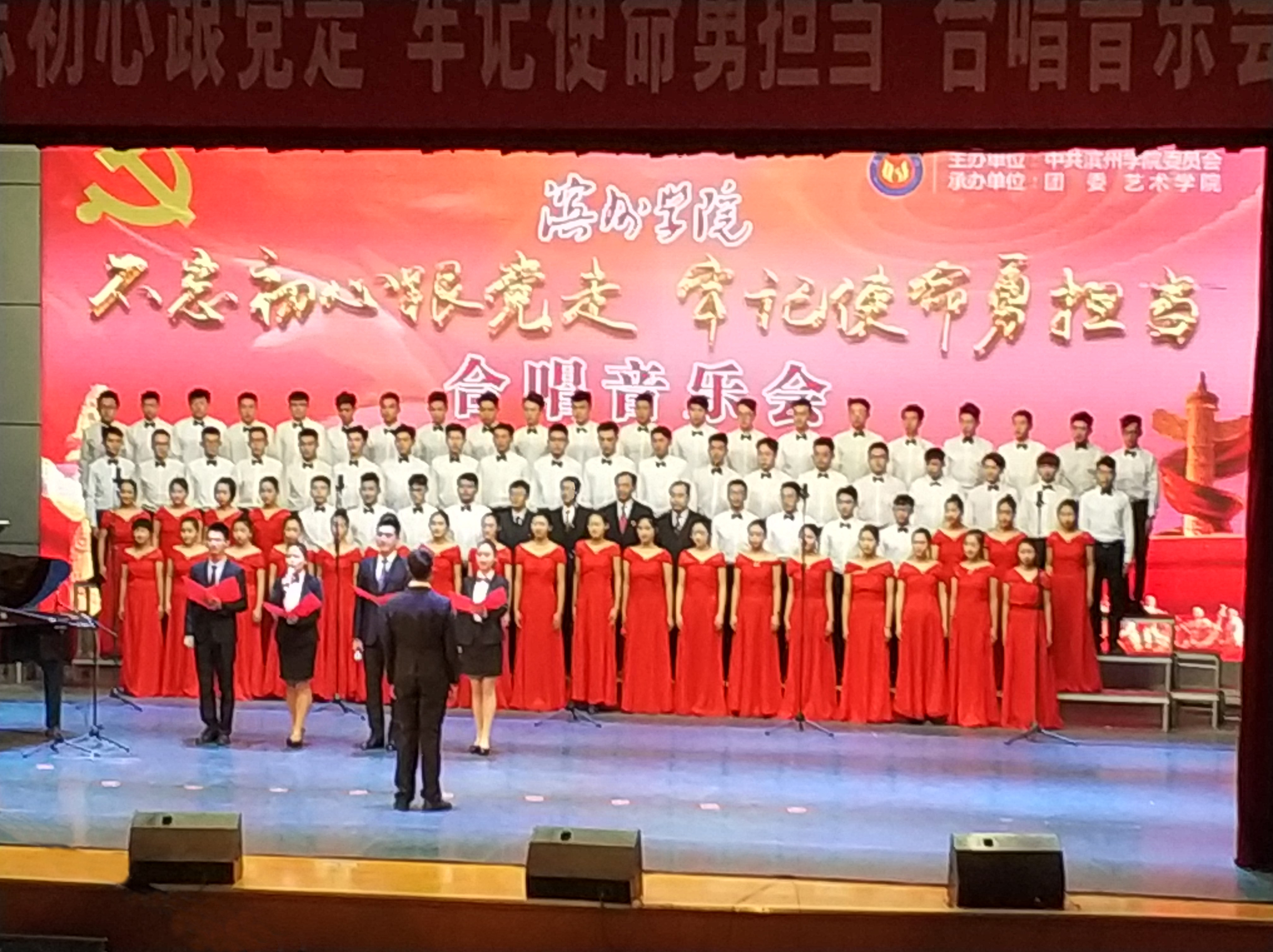 为庆祝公司第三次党代会胜利闭幕,进一步凝聚力量,服务公司发展大局,11月29日晚,由公司党委主办,团委、艺术公司承办的“不忘初心跟党走 牢记使命勇担当”合唱比赛在学苑会堂第一报告厅举行。公司师生组成了82人的合唱团参加比赛,经理、党总支副书记左登华,党总支书记、副经理许广生,党总支副书记韩贻强,副经理李新参加了合唱比赛。