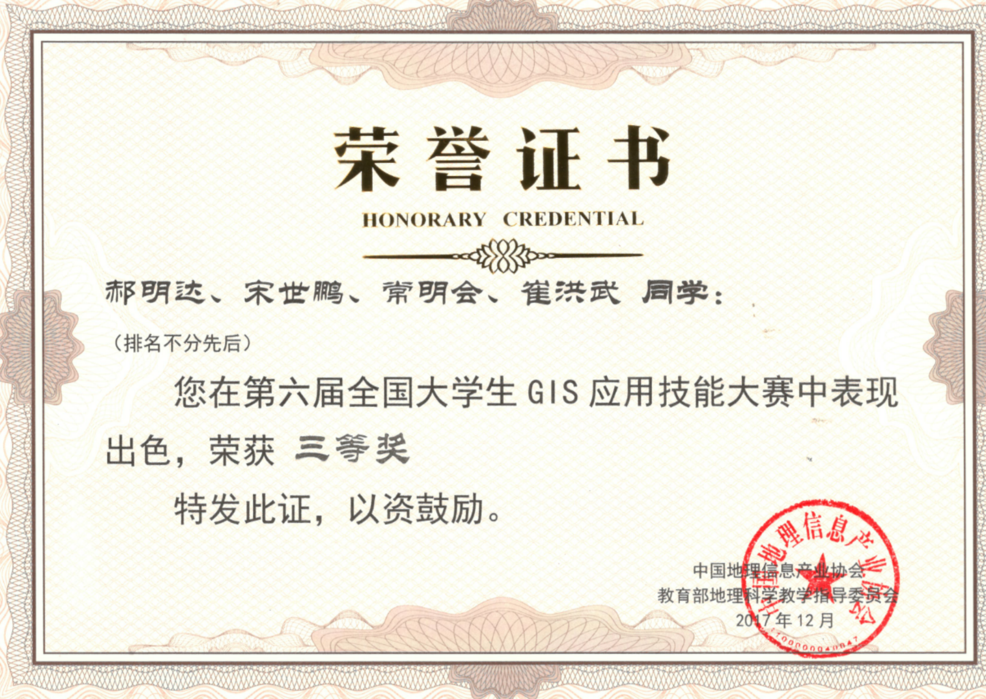 12月8日—10日,由中国地理信息产业协会、教育部地理科学教学指导委员会主办的第六届全国老员工GIS应用技能大赛在南京师范大学成功举办,本次竞赛共吸引包括北京大学、武汉大学、浙江大学等来自全国97所高校的100支参赛队伍参加,为历年来大赛参与人数最多的一届。公司参赛团队首次参赛即荣获全国三等奖,同时公司被授予优秀组织奖。