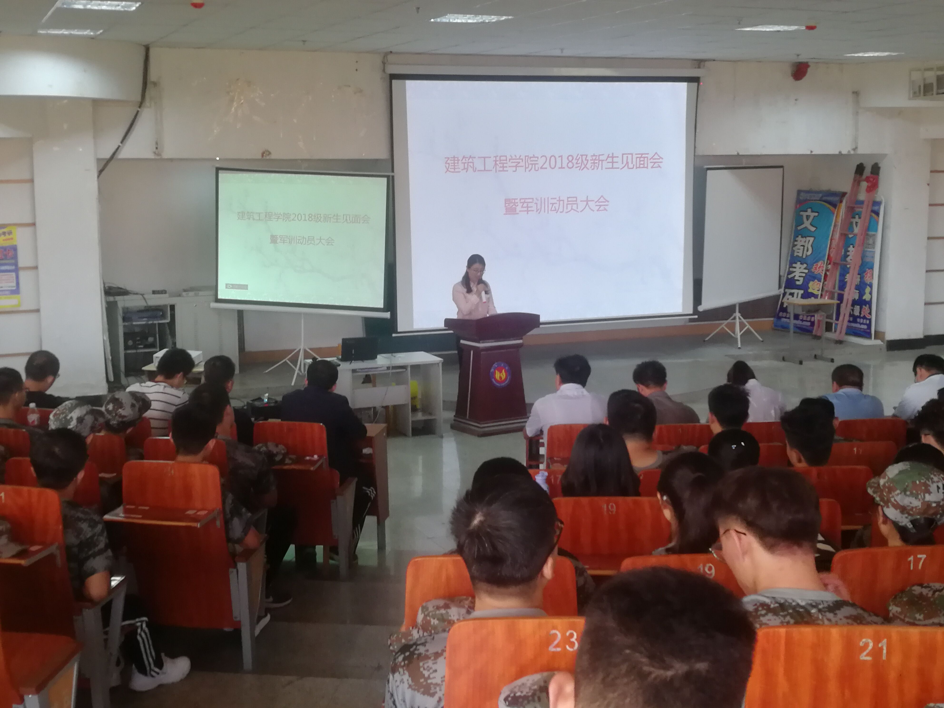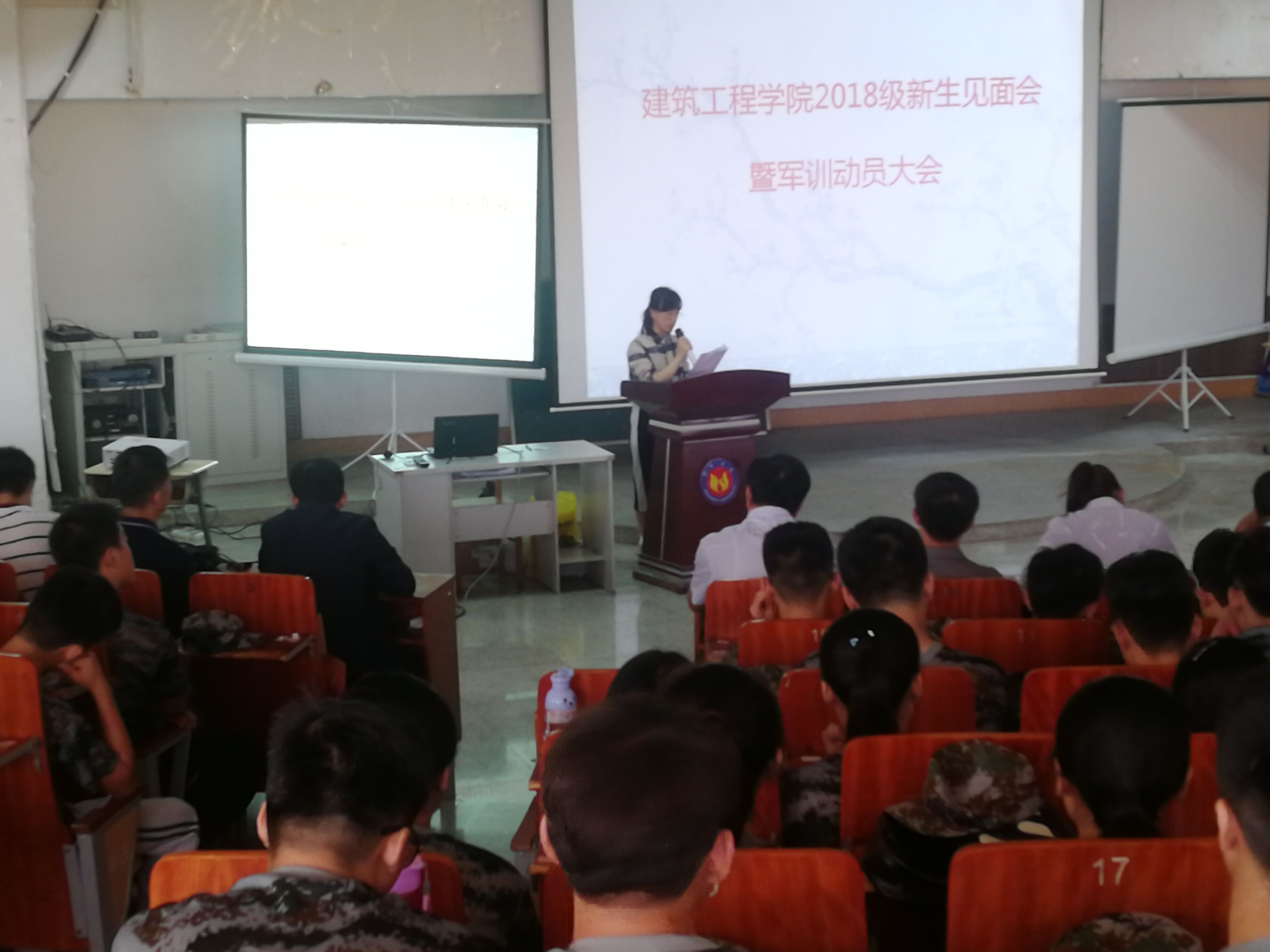 9月9日上午,公司在图书馆三楼报告厅举行了2018级师生见面会暨军训动员大会。公司经理左登华、党总支书记许广生、副经理李新、全体教职工及全体2018级新生参加大会,许广生书记主持会议。