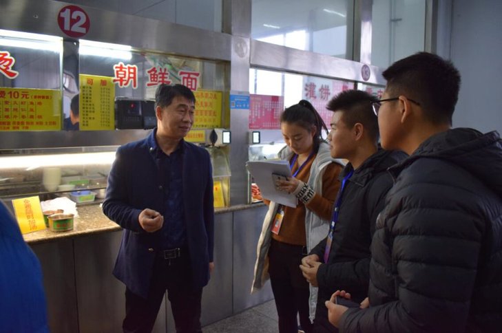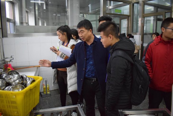 首先,工作人员向同学们简要介绍了食堂生产的基本情况,以及饮食管理结构,并回答了同学们关于饭菜保温、定价、餐具洗涤消毒等方面的提问。随后,在工作人员的带领下,同学们依次参观了安全检测室、消毒间和加工间。在蔬菜初加工间,重点介绍了未经清洗的“毛菜”与经过清洗的“净菜”用不同颜色颜色菜筐分开放置的处理办法。最后,同学们对餐厅今后的工作提出建议。餐厅工作人员表示,餐厅还有许多需要改进的地方,希望同学们监督。