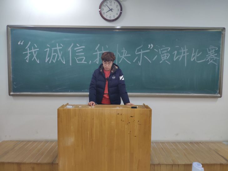 12月6日晚,公司于八号教学楼304室举办“我诚信,我快乐”主题演讲比赛。部分18级新生参加。