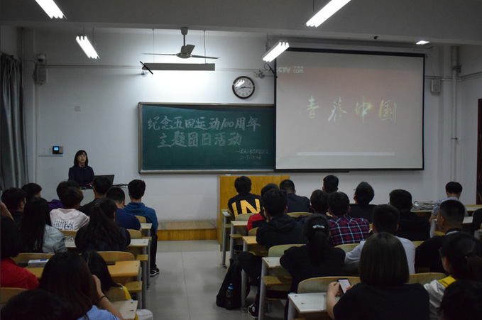 活动伊始,赵琳讲解了“五四运动”的光辉历史,并对其历史意义和启示作了阐释。王旭光为大家讲解了五四精神的含义,五四运动的历史意义和五四精神的时代内涵。随后,与会人员一起观看了刘昕昊等同学的诗朗诵《五四运动》并齐唱《我和我的祖国》,大家的歌声饱含深情,饱含着大家爱国奉献的深情。