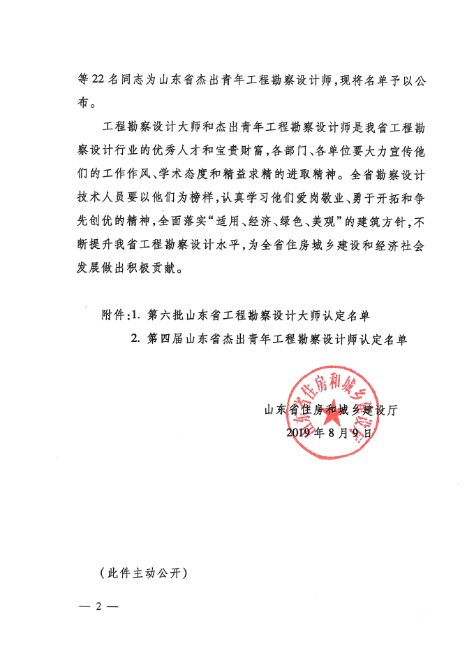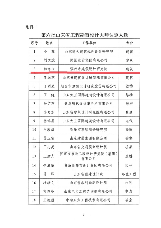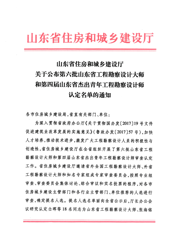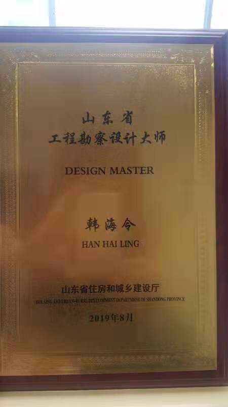 热烈祝贺公司客座教授韩海令荣获山东省工程勘察设计大师荣誉称号