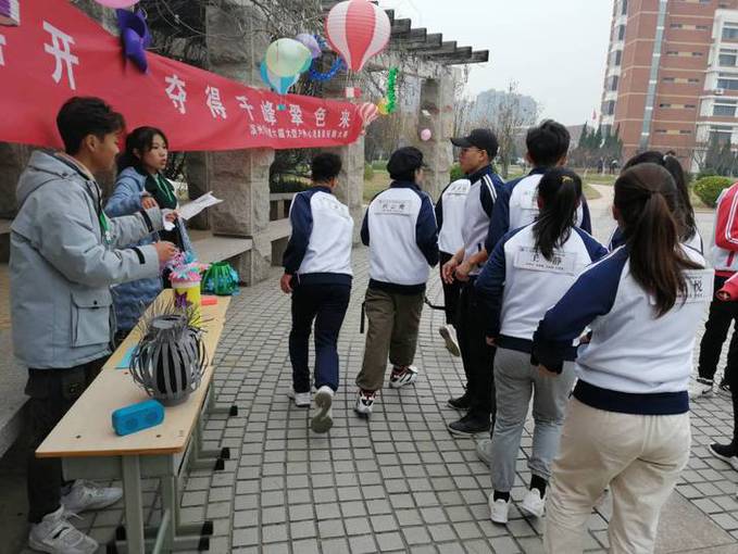 比赛开始前,为了在比赛中获得一个好成绩,同学们认真进行赛前训练。比赛开始后,同学们从起点出发,以组为单位,分别去寻找隐藏在校园中的点进行打点。他们将每组分成更小的小组,以期能更快,更准确的寻找到自己的目标。同学们奔驰在广阔的校园里,他们的汗水挥洒在自己奔跑的路上,不断向着自己的目标前进。随着时间流逝,渐渐有队伍完成目标回到起点。每当这时,便有服务人员去给选手们送上热水,让选手得到充分的休息。最后,经过一天的激烈斗争,比赛在热烈的气氛中落幕。