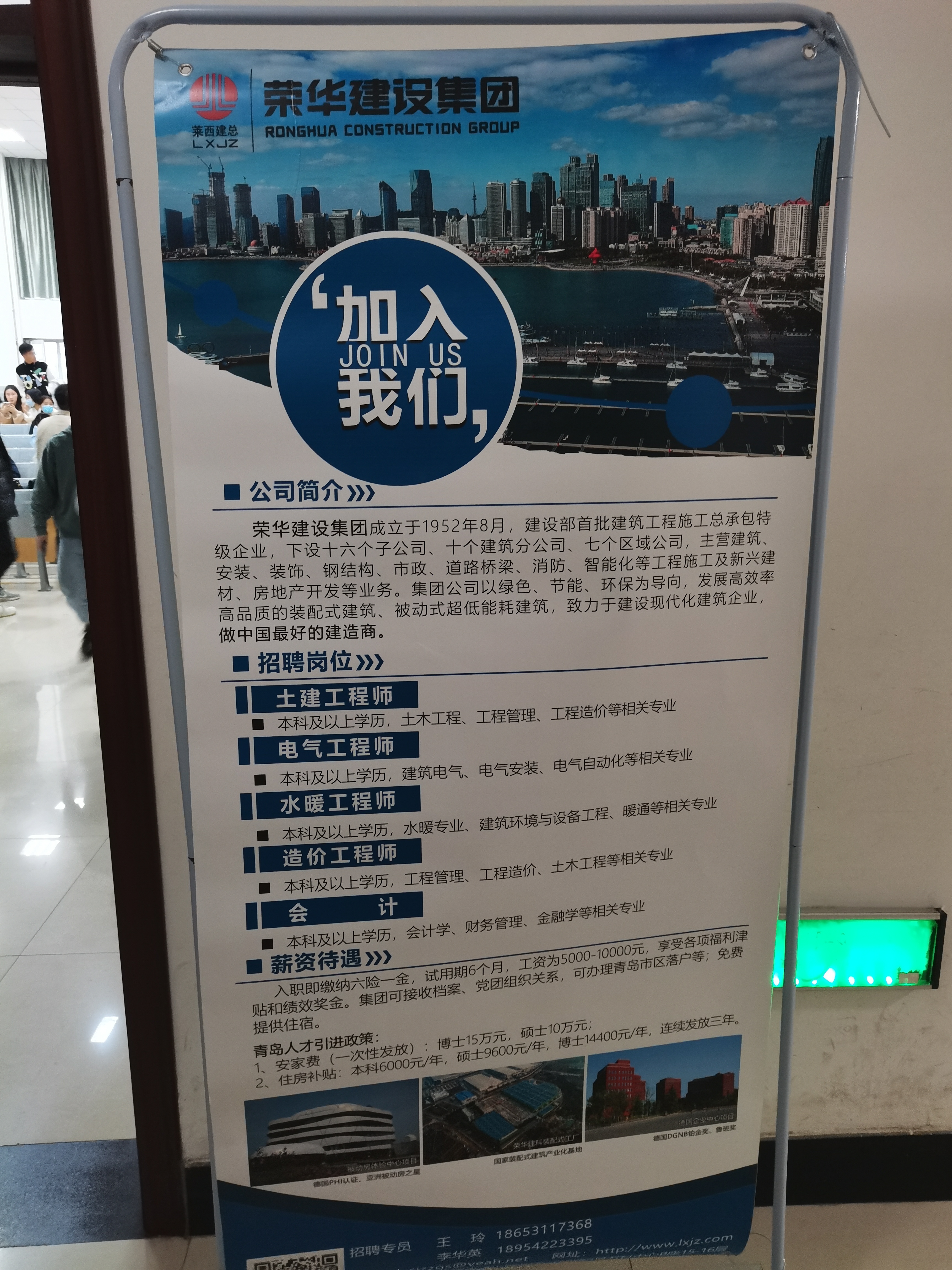 3月14日,荣华建设集团和中国电建集团山东电力建设第一工程有限公司来院招聘,2021届毕业生近100人参加。
