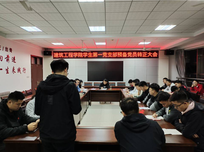 10月24日,公司于九教会议室举办党支部预备党员转正大会,党总支副书记韩贻强、团总支书记董志强、辅导员张娜、李璐璐以及各支部党员、预备党员参加此次大会。