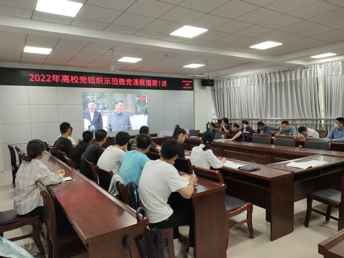 6月10日上午9点,建筑工程公司教师和员工党员代表在9教215会议室集体观看2022年高公司党组织微党课展播第1讲。