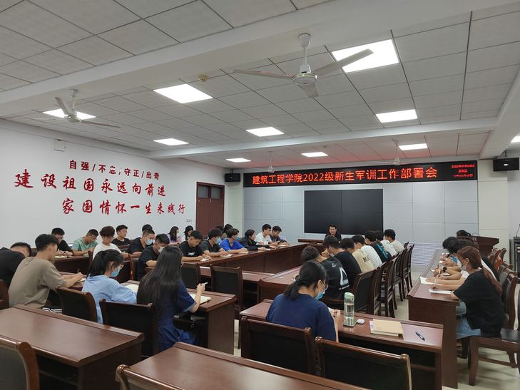 为确保新学期新生军训工作顺利开展,9月16日,建筑工程公司召开新生军训工作部署会,由员工科科长董志强组织召开,员工会副部长以上、督导中心副主任以上及22级全体小班参加本次会议。