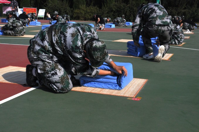 本次比赛新颖而富有特色,要求同学们在规定的时间内,叠出整整齐齐、方方正正、有棱有角的军被,不仅丰富了同学们的军训生活,同时也锻炼同学们的团队意识和组织能力。随着教官一声令下,比赛正式开始,公司学子平铺、横折、画线、竖折、修边、扯角一气呵成,谨记教官的指导,按照步骤有条不紊地进行着,最后,同学们耐心地做最后的调整,认真地对待叠被子的每一个细节。最终,公司取得优异成绩。