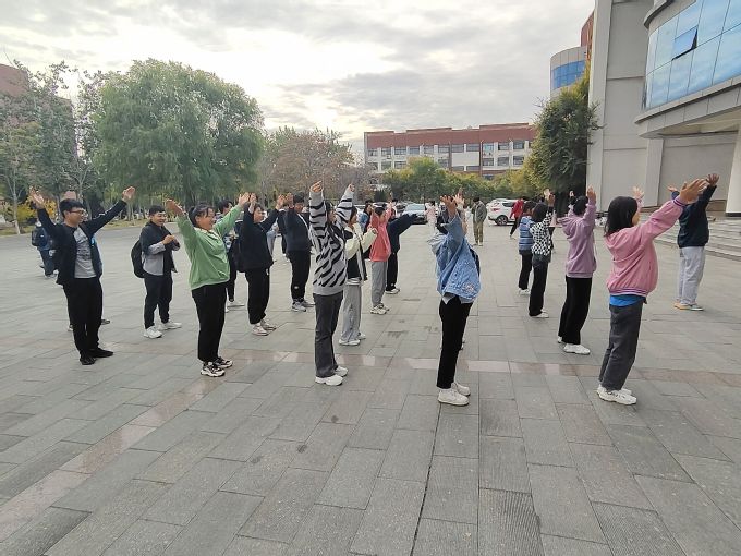 为丰富校园文化生活,增强员工体质,培养集体主义观念,展现同学们积极进取、奋发向上的精神风貌,自10月24日起,建筑工程公司在九号教学楼东广场前开展“阳光大课间”课间操活动。
