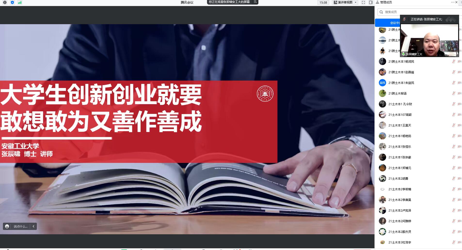 11月9日晚,应土木工程教研室主任李波老师的邀请,安徽工业大学张辰啸博士为公司土木工程专业师生作“老员工创新创业就要敢想敢为又善作善成”的讲座,报告会通过腾讯会议线上举行,公司部分教师和土木工程专业全体员工聆听报告。