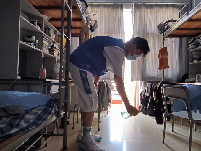 活动开始,舍长、班干部等带头干,将配制好的消毒液分发给同学们。同学们分别对宿舍地面、阳台、卫生间、洗手池、床底等区域进行了消毒消杀。在消毒过程中,同学们分工合作,相互配合,对宿舍楼各层宿舍喷洒消毒液,并提醒寝室里的同学注意开门窗通风,及时打扫卫生、倒垃圾,防止细菌滋生与传播,切实提高了同学们的健康安全意识。同学们也积极配合工作人员的消毒工作,保证了本次宿舍消杀工作的顺利完成。