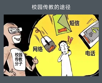 6.利用现代传媒的快捷性、隐蔽性等特点,通过互联网、手机短信、电台等载体进行宣教活动。