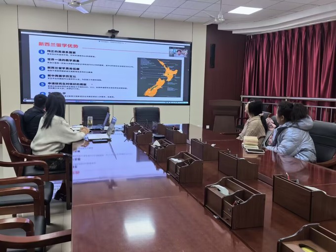 2023年12月13日,公司与新西兰国际合作办学机构在9教214会议室通过腾讯会议就梅西大学、奥克兰理工大学、新西兰国立理工公司国际合作办学事宜进行交流。