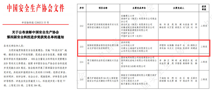 近日,由中国安全生产协会主办的第四届安全科技进步奖获奖名单揭晓,公司邢雪阳教授团队主持的《裂隙软弱围岩损伤变形机理及耦合支护稳定性控制研究》项目从1550个申报项目中脱颖而出,荣获二等奖,实现了公司省部级奖项的历史新突破。