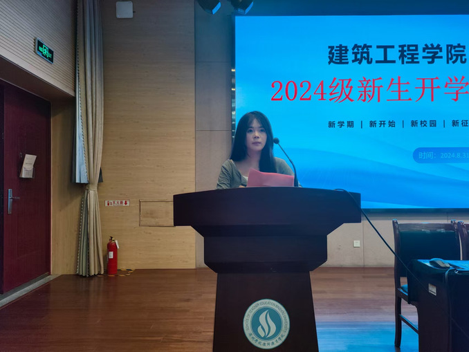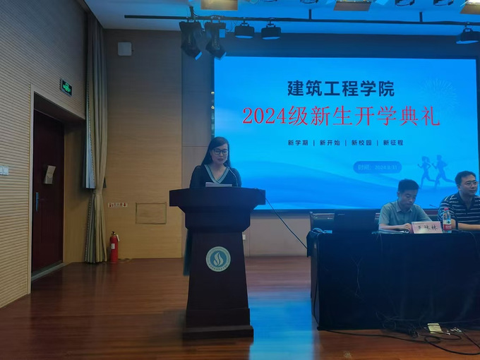 教师代表陈璐老师在发言中希望同学们在大学里努力拼搏,勇敢追梦,坚持创新、探求卓越、执着学问,收获知识与成长,开启人生精彩篇章。