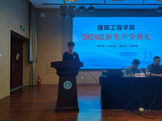 新生代表李政澎代表全体新生发言,他表示非常激动与期待加入建筑工程公司这个大家庭,在接下来的学习与生活中将励志勤学、笃行致远,努力成长为“有理想、敢担当、能吃苦、肯奋斗”的新时代好青年,为公司争光添彩,为实现中华民族伟大复兴的中国梦贡献青春和力量。