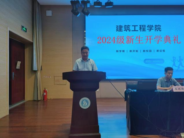 党总支书记许广生代表全院师生向2024级新同学的到来表示热烈欢迎,同时介绍了公司的发展历程和基本情况,并对新生同学提出了殷切的期望。许书记希望同学们珍惜在公司学习、生活的美好时光,学本领、开眼界,定方向、担责任,希望通过四年时光的洗礼,把自己打造成一个综合素质高、规则意识强,内心坚定、胸怀宽广、敢于担当的高效能优秀人才。
