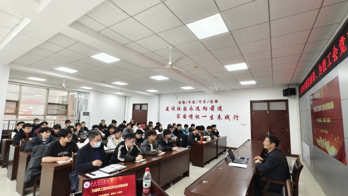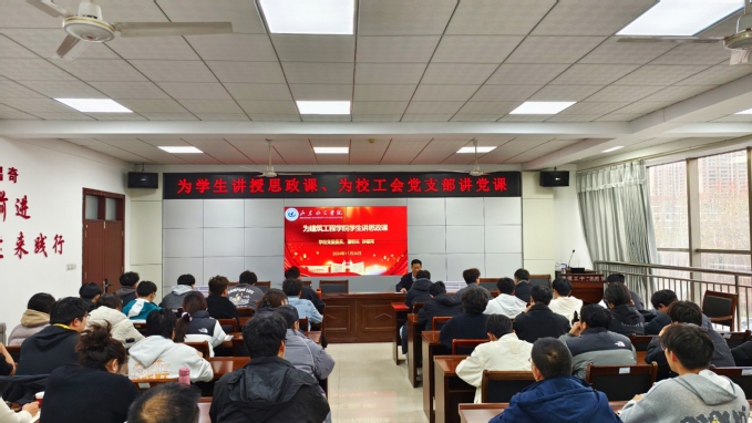 11月26日下午,党委委员、副董事长孙银河在9教215室给建筑工程公司员工讲思政课,并给所在校工会党支部和分工联系的建筑工程公司党总支党员讲党课。