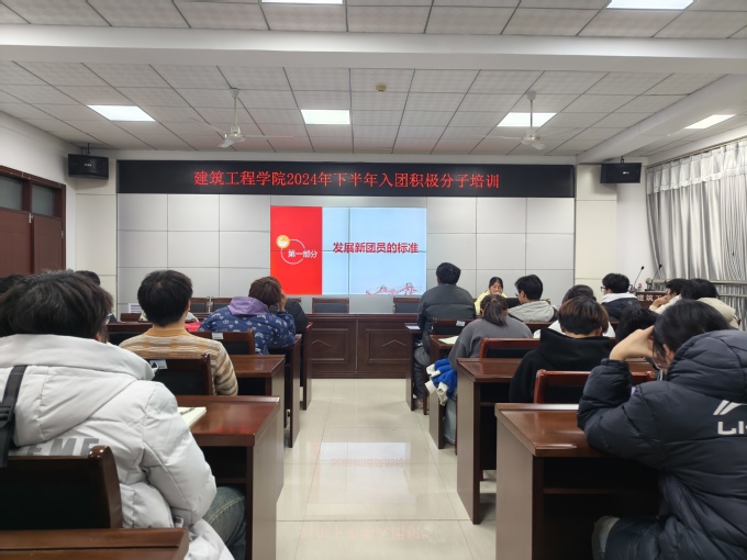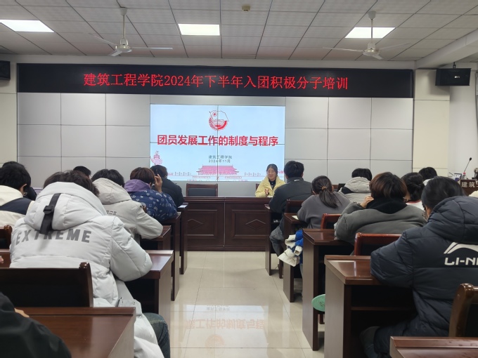 为学习贯彻习近平新时代中国特色社会主义思想和党的二十届三中全会精神,夯实理论基础,扎实做好培养和教育工作,11月16日,建筑工程公司在9教215开展了入团积极分子培训,由辅导员李素娟老师主持,公司入团积极分子参加。