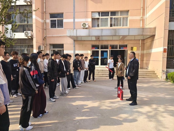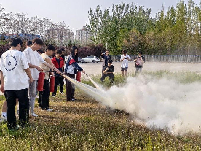 随后,保卫处王老师为同学们详细介绍了常见的二氧化碳灭火器及干粉灭火器的区别,并通过“提、拔、握、压”四步操作法进行演示,让同学们对灭火器的使用方法有了清晰直观的认识。为了让同学们能更好地掌握实操技能,王老师特意点燃了事先准备好的火盆,鼓励同学们上手实操。同学们踊跃参与,在实践中切实掌握了灭火器使用技巧,增强了应对初期火情的能力,为紧急情况下的消防安全增添了一份保障。同时,这次培训也在同学们心中种下了“学消防、懂消防、用消防”的种子,进一步提升了大家的消防安全意识。