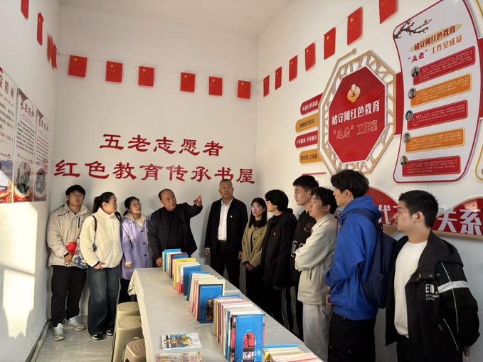 随后,在韩书记的带领下,志愿者与居民们一同走进五老志愿者红色教育传承书屋,聆听红色教育的发展和兴旺历程,了解红色资源的激励涵育作用。这小小的书屋生动记录了中国共产党领导人民进行革命、建设和改革的历史进程,蕴含着丰富的精神力量,令所有人心潮澎湃,热血沸腾。